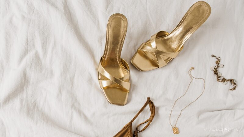 つま先は、ポインテッドトゥやスクエアトゥなど、やや直線的な形の方が大人っぽさが出ます。